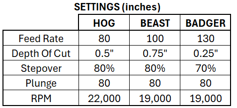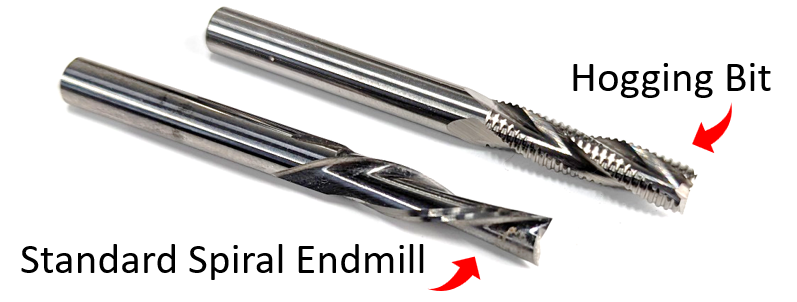 Mechanically, hogging bits have a high chipload value. Meaning they can manage a lot more chips during a single rotation than regular endmills, which gives them the ability to cut much more aggrssively without the potential of excessive chip loading (getting too many chips in the flutes during a cut).